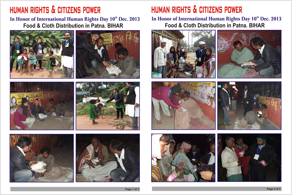 In the Honor of InternationalHuman Rights day i.e. 10th Dec 2013 with an idea of taking small step in the favour of restoring the Humanity, food & cloth distribution work was held in Patna.