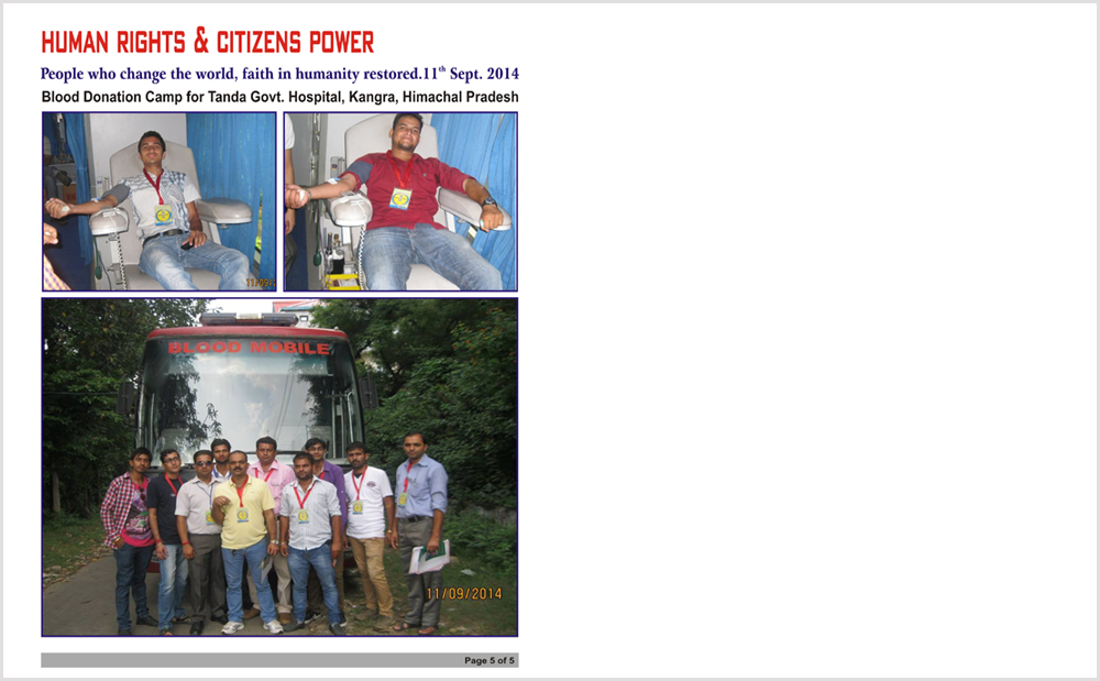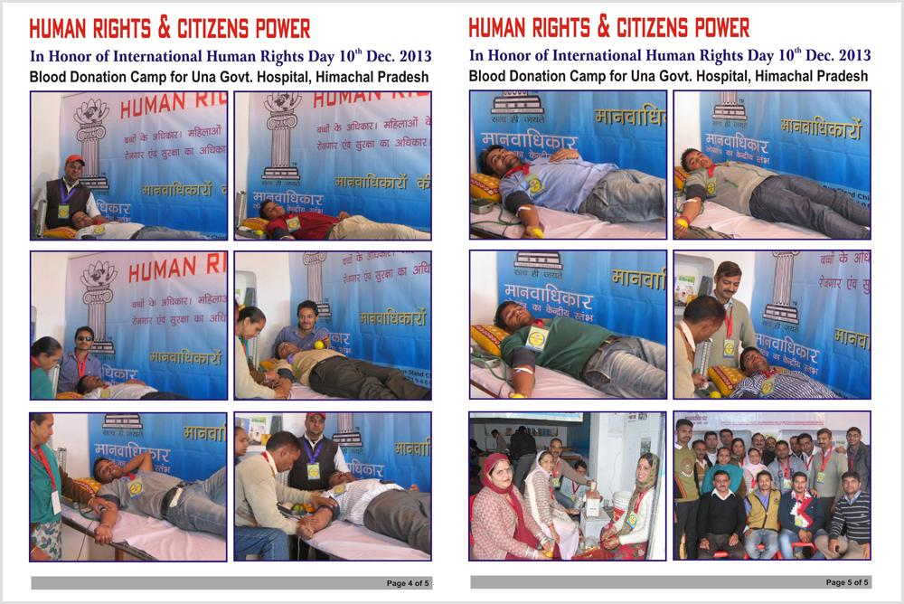 In the Honor of International Human Rights day i.e. 10th Dec 2013,HRCP Himachal team conduting a Blood Donation camp was held for Una Govt. Hospital,Himachal Pradesh.
