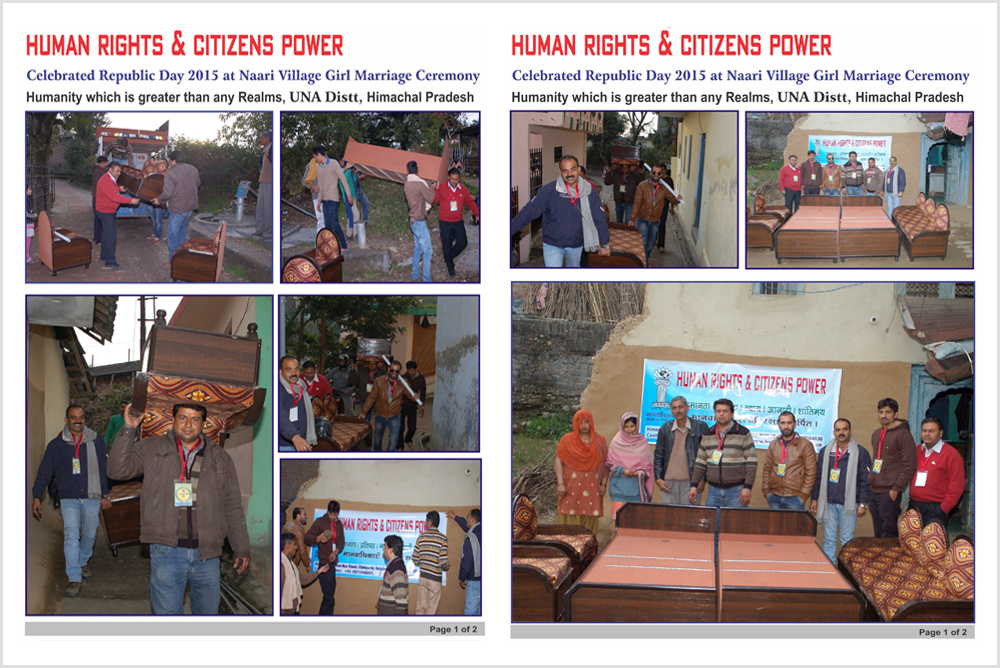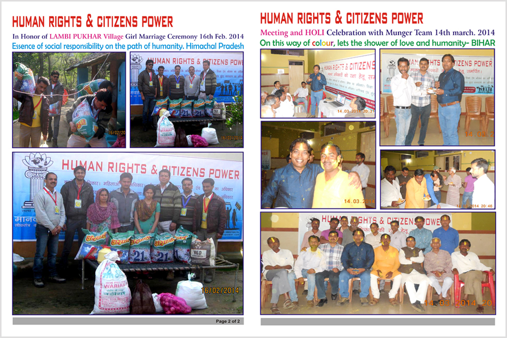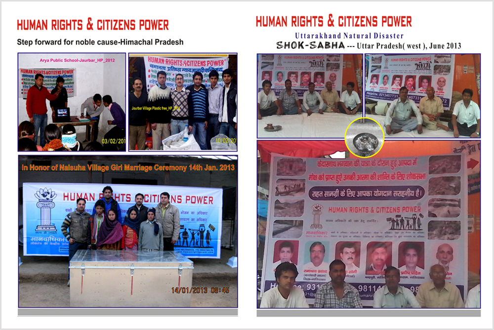 school visit to promote Child & women education, an awaareness campaign in relation to "Right to Equality", providing the utilities to a family required for a girl Marriage Not only with the Financial or physical support,the members of HRCP Uttar pradesh (West) held a Condolence Meeting with the motive to provide sentimental support & boost the morale of the families who lost their relatives in the natural disaster occured in Uttarakhand.