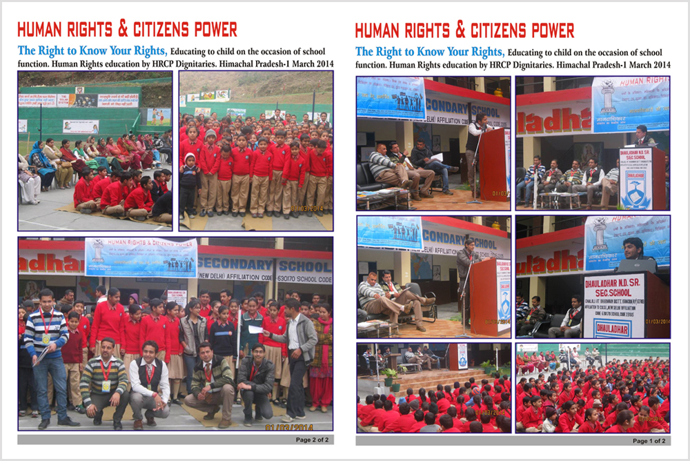 HRCP Himachal Pradesh team performing a commendable task towards the awareness of Human Rights where they visited a school out HRCP Himachal Dignitaries addressing the school children about the importance of education & thier rights to education on 1st march 2014.