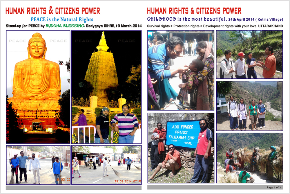 Peace as one of the basic component of Human Rights,HRCP Bihar team,to signify its beauty & the greatest preacher "Buddha" Ajeet Sharma the Founder of HRCP along with HRCP Bihar visited the holy landed Bodhgaya & did a very inspiring act of sweeping & cleaning the premises by themselves having an intension of culture presevation & its promotion. the Founder of HRCP Mr.Ajeet Sharma with a very beautiful thought in his mind & heart visited Uttarakhand Disaster affected areas on 24th apr 2014 with HRCP team where they performed various deeds like feeding the needy,promoting girls education ensuring right to live,right to education & right to liberty.During the same course they looked pretty fun making which they always are..thier efforts were highly appriciated by few social Personalities:Mrs.Mangla & Rudraprayag Dist.Administrator.