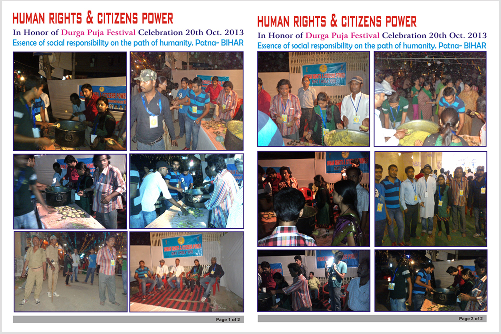 HRCP Bihar actively taking part in the Dainty distribution ceremony along with the Bhandara on the occasion of Durga pooja on 20th oct 2013 in Patna city,bihar.